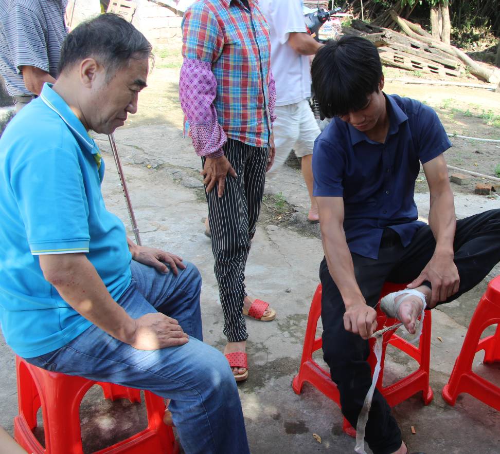 上午9时许,到达琼山区龙塘镇三桥村委会玉祖村,这是本次探访的首位患者杜桂珍居住的地方,杜桂珍见到我们之后非常高兴,和我们一一握手表示欢迎。随后海南省医疗救助基金会领导与杜桂珍进行了亲切的交谈,并由海南骨科医院汪建军主任检查了其康复情况,并交代了要在生活中注意的一些事项,随后一行人为其送上了祝福,告别离开。